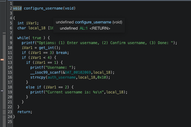 这里的confire username的username是没有初始化的,而且调试发现恰好此时local_18就是之前残留的auth_code的值