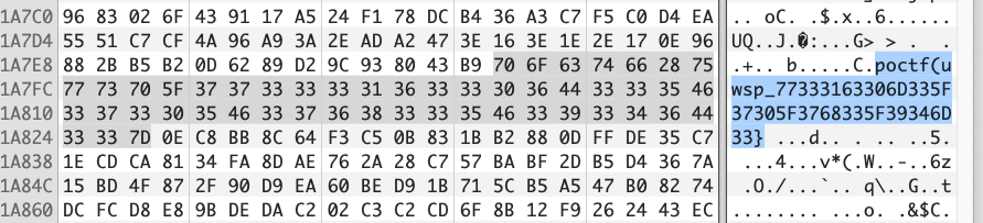 1 | poctf{uwsp_411_y0u2_8453_423_8310n9_70_u5} |