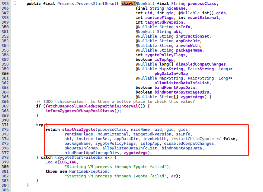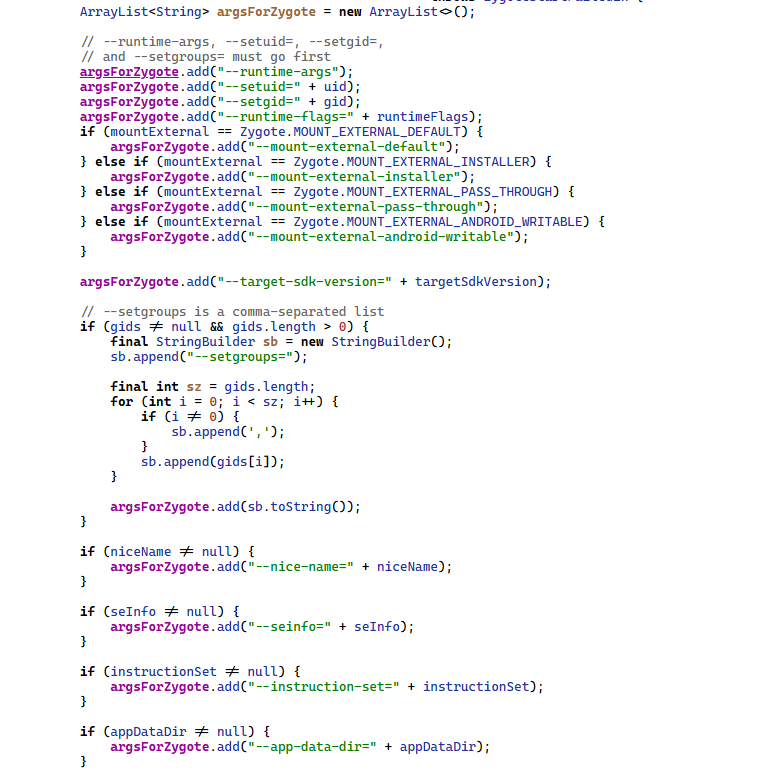 源码地址:/frameworks/base/core/java/android/os/ZygoteProcess.java