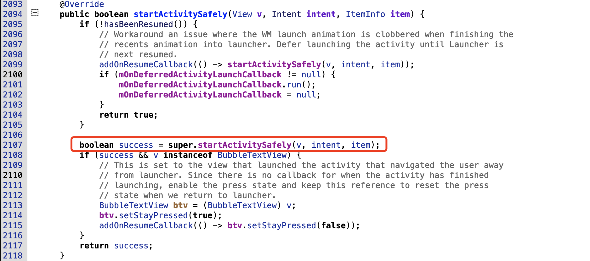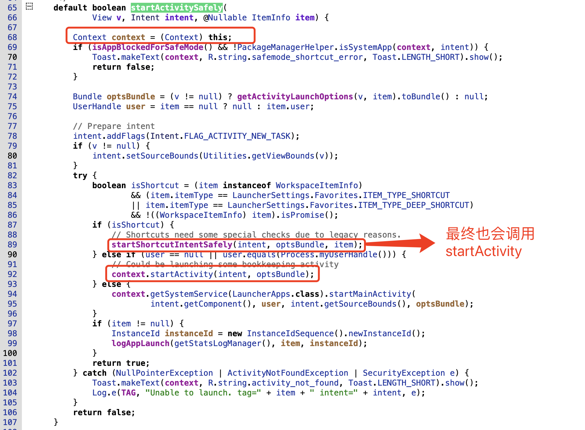 startActivitySafely是在BaseActivity中实现的AppLauncher的接口方法