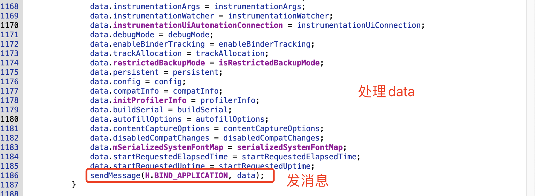 这里的调用栈就不深入了,接下来会调用到bindApplication方法