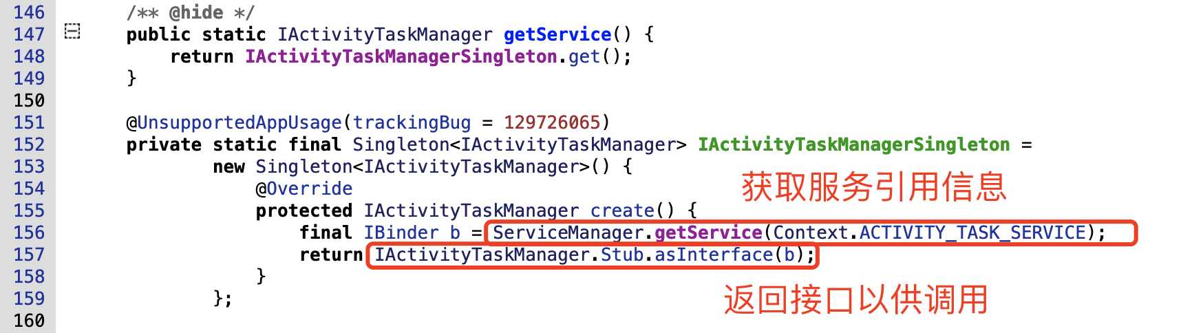 ActivityTaskManager.getService()能够获取到ActivityTaskManagerService的实例对象。