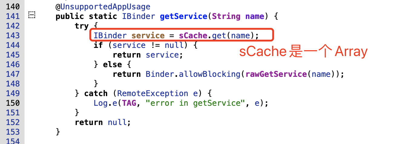 这里的ServiceManager应当对应的是当前进程的ServiceManager的单例,所以这里的调用是Launcher的ServiceManager单例。