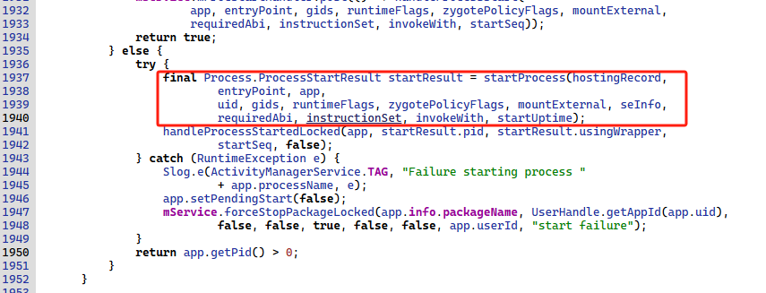 3pid = Zygote.forkAndSpecialize(parsedArgs.mUid, parsedArgs.mGid, ..., parsedArgs.mAppDataDir);