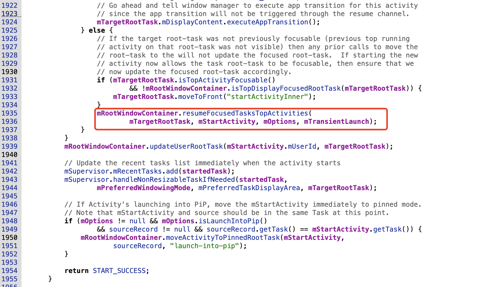 在ActivityStarter中最终会调用RootWindowContainer的resumeFocusedTasksTopActivities方法