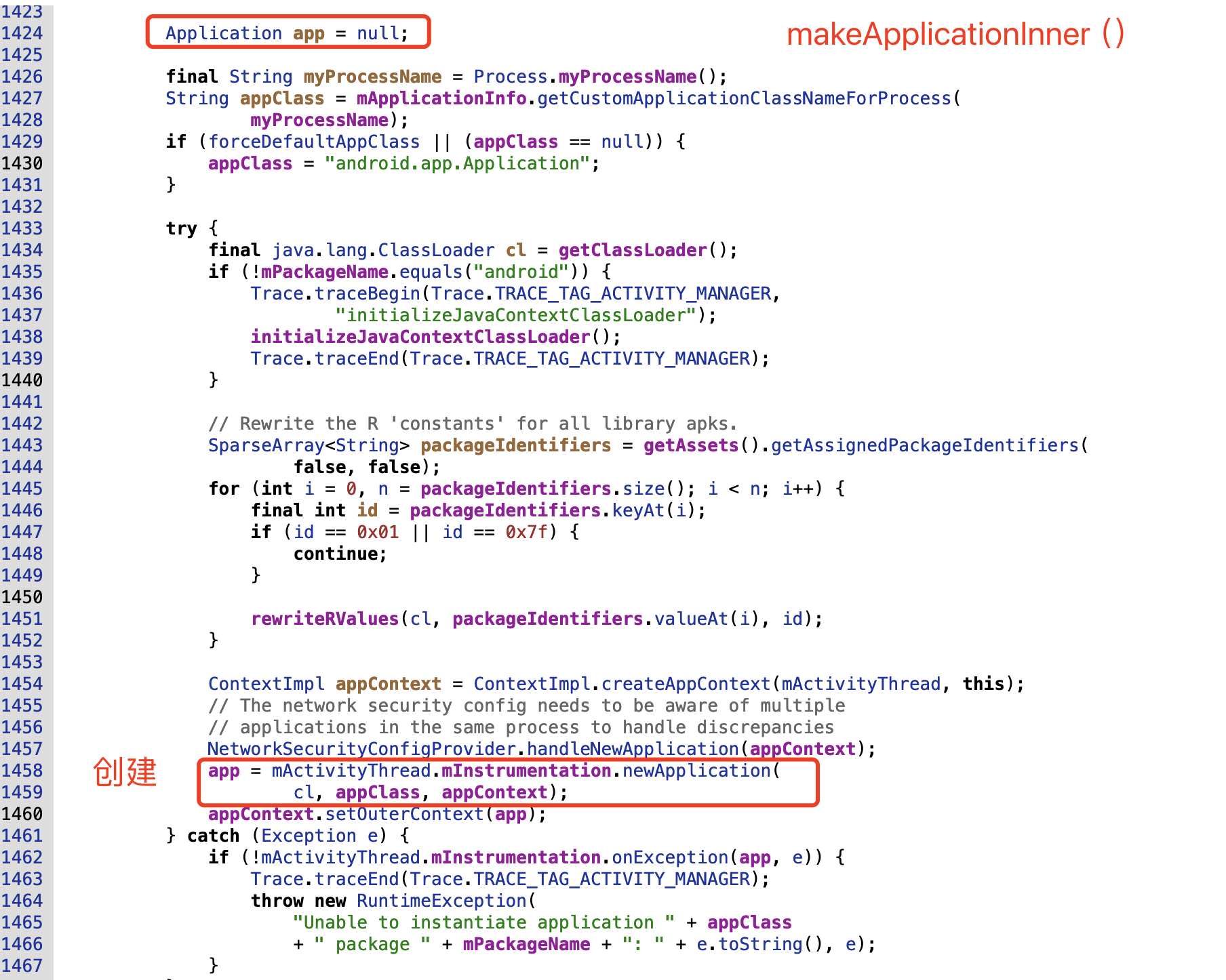 了解启动流程主要关注调用了Application什么方法,因为一代壳的实现是依赖于app启动时的一些初始化调用来加载或解密dex文件的。