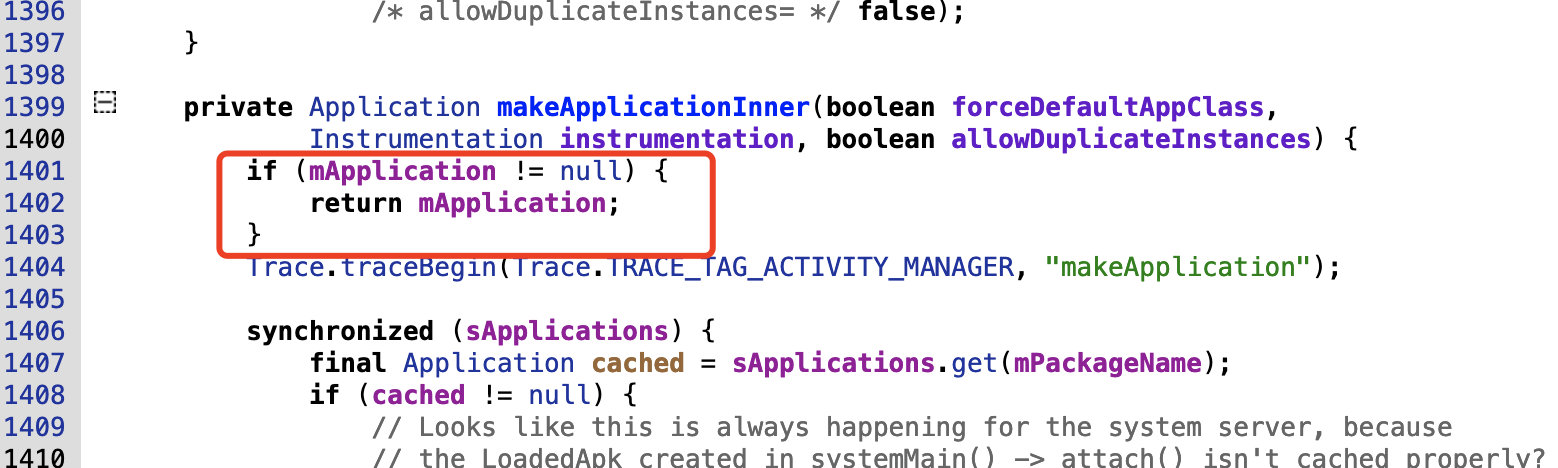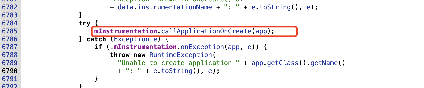 再回到ActivityThread.java的handleBindApplication中,还会有调用Application的OnCreate函数。