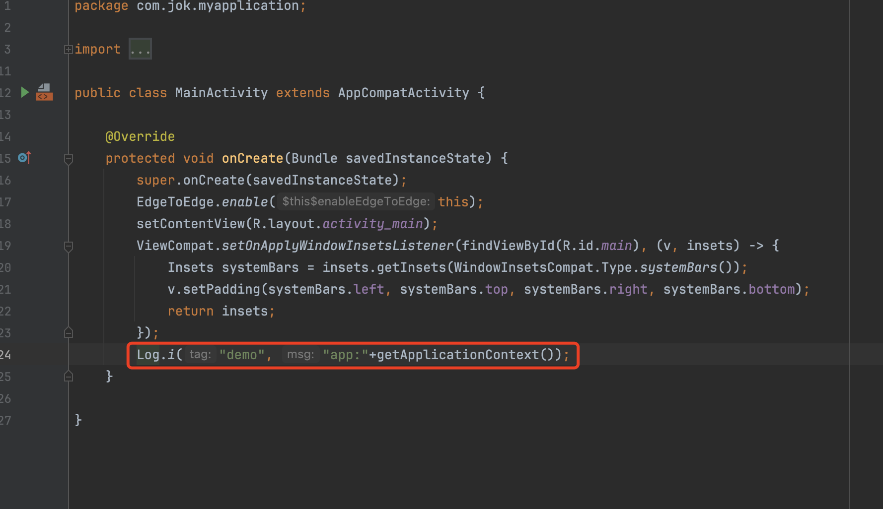 1 | Log.i("demo", "app:"+getApplicationContext()); |