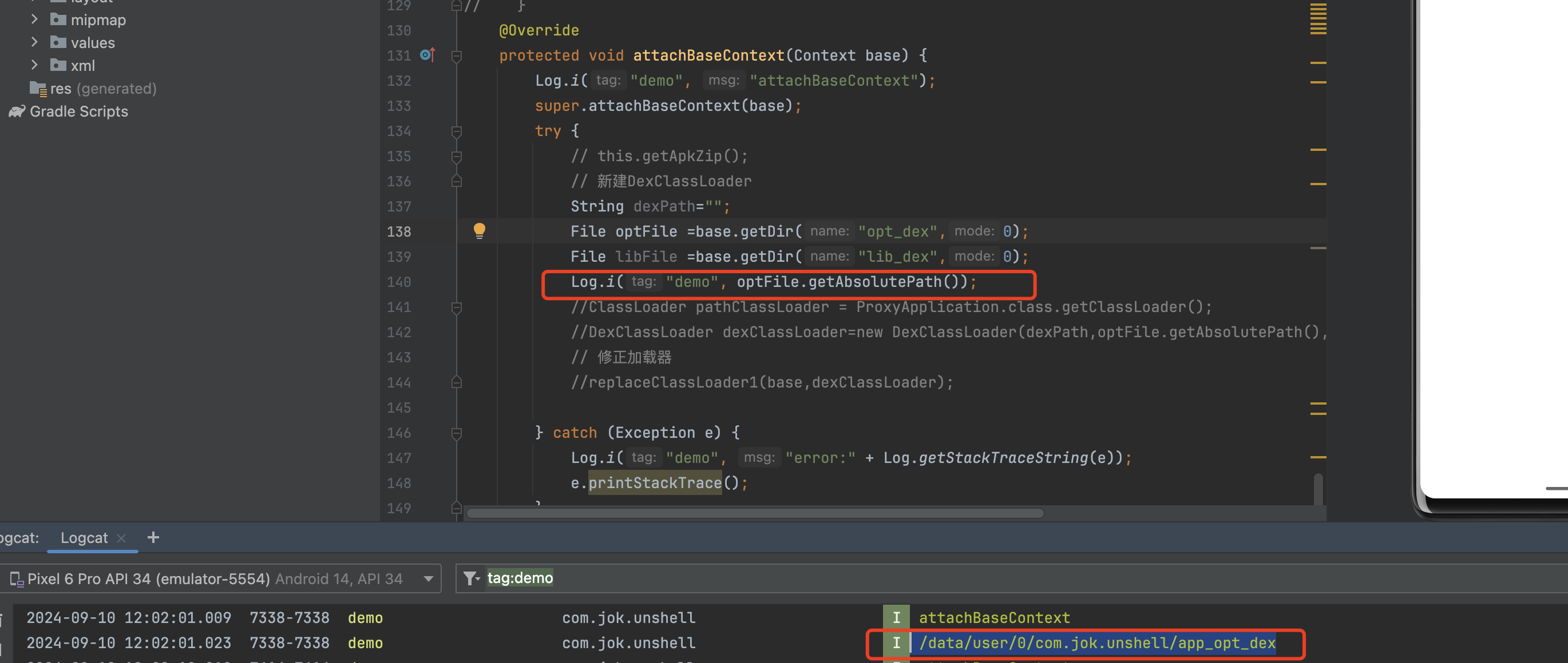 Writable dex file '/data/user/0/com.jok.unshell/app_opt_dex/src.apk' is not allowed这样的报错,原因是Android14有一个改动: 更安全的动态代码加载,简单来说就是打开DEX、JAR、APK等文件时必须将DEX文件设置为只读。 RefinvokeMethod.java1