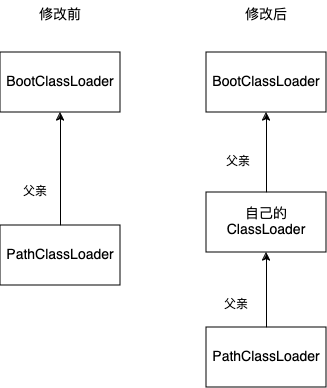 这里开始需要了解双亲委派模型,简单而言就是java中的类加载器有父子关系,当某个加载器需要加载某个类的时候,先会交给其父类,如果加载过了就直接返回,如此往上,如果父加载器都加载不了,再抛回来自己加载。
