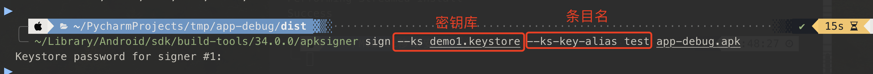 1 | apksigner sign --ks demo1.keystore --ks-key-alias test app-debug.apk |