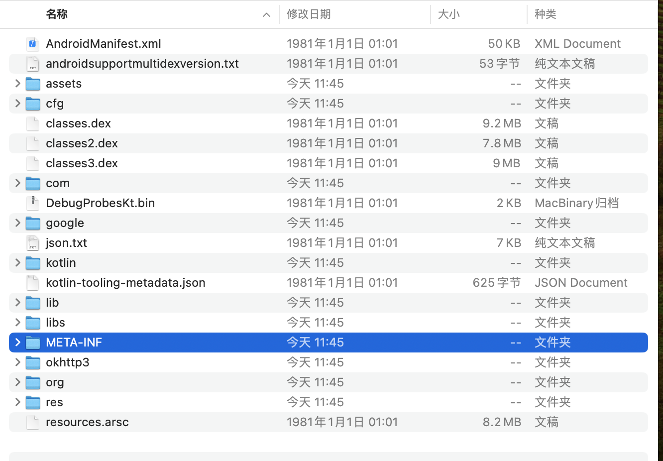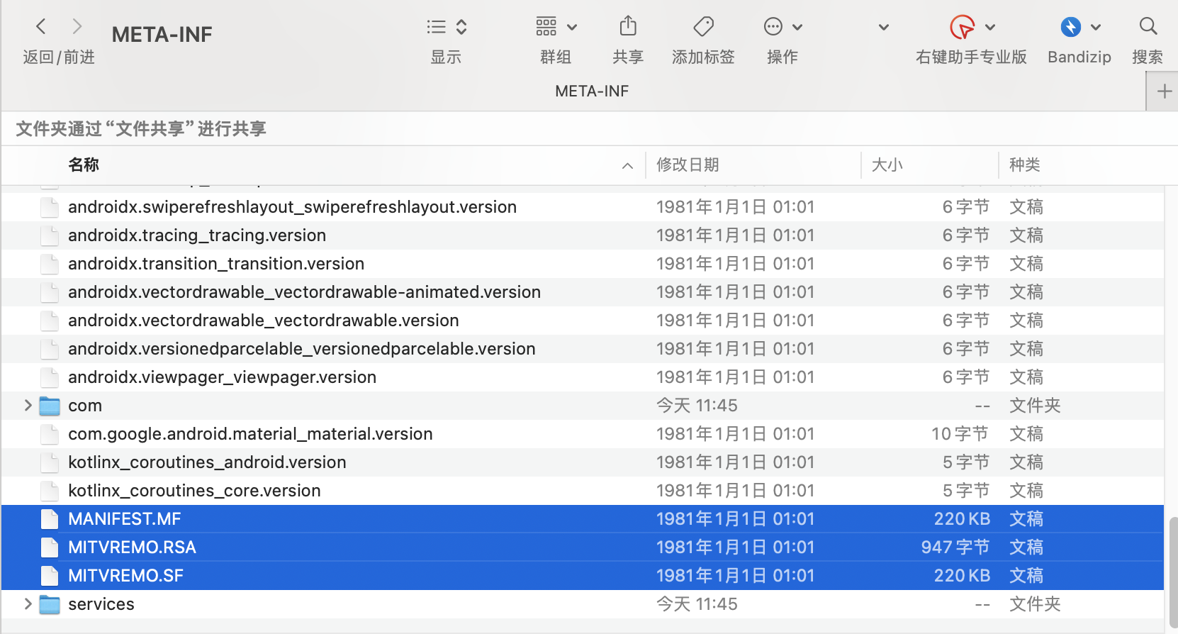 v1签名后会增加META-INF文件夹,其中会有如下三个文件: