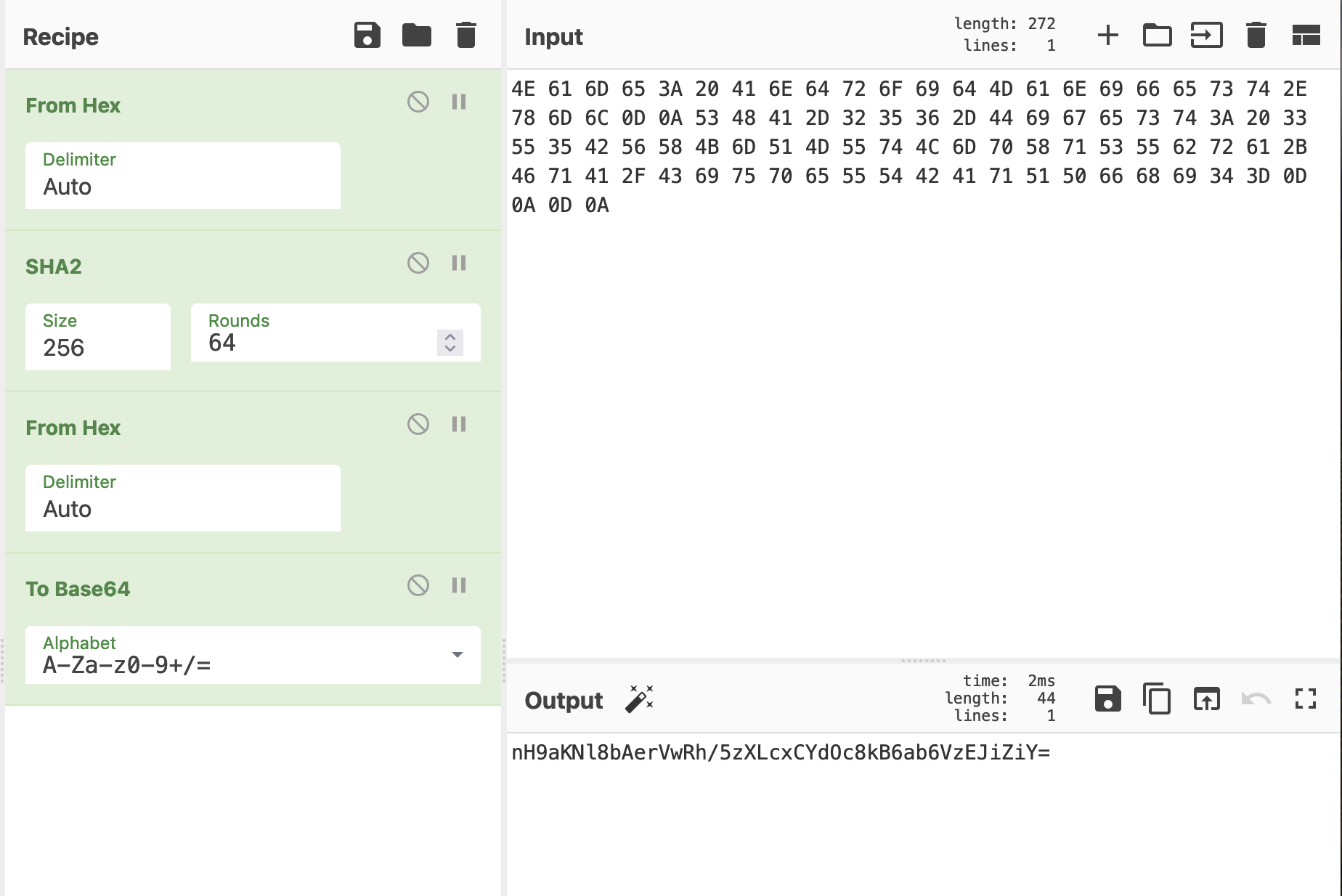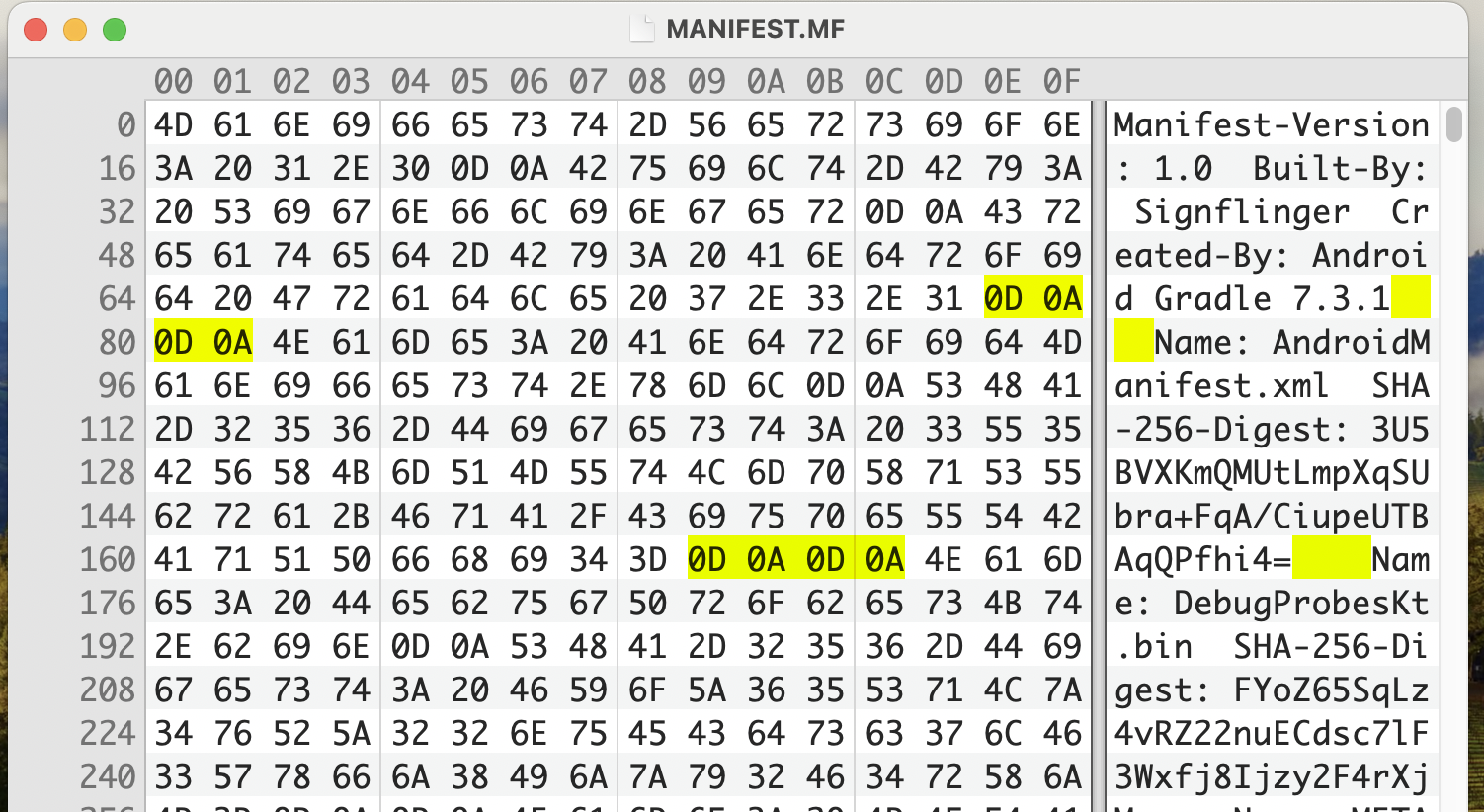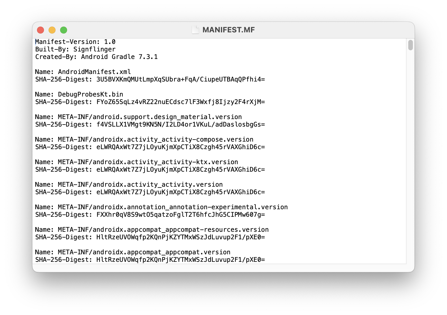 MANIFEST.MF储存了文件名及其SHA256摘要的base64编码